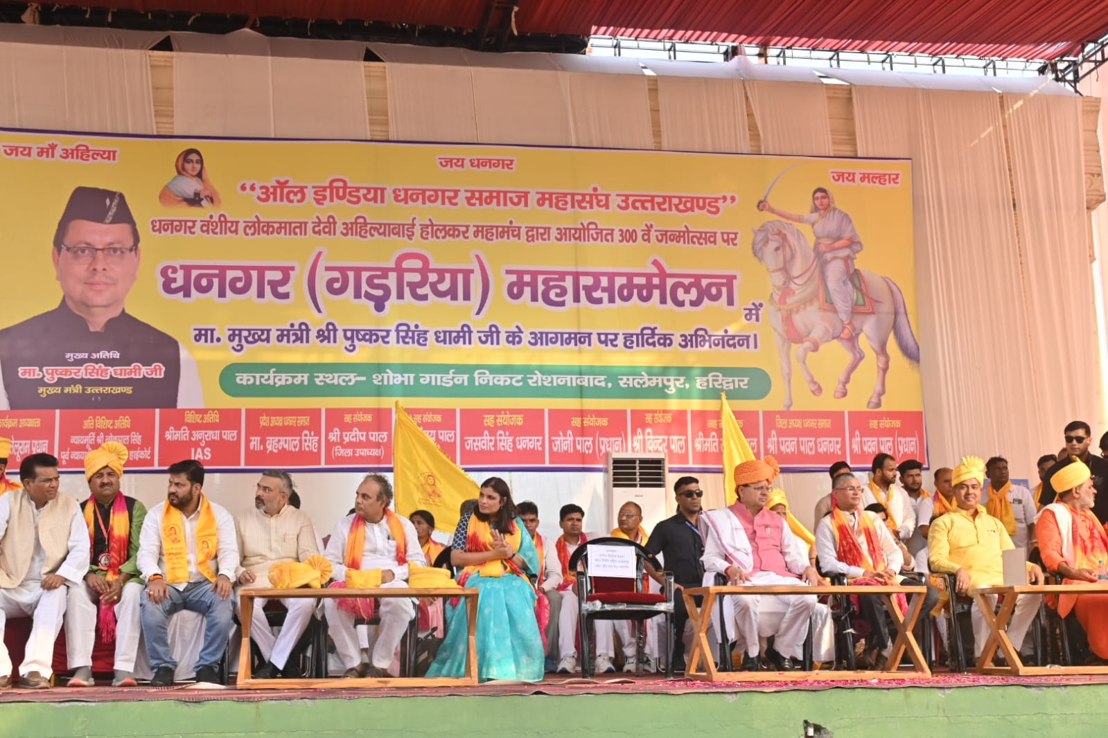 मुख्यमंत्री श्री पुष्कर सिंह धामी ने हरिद्वार में धनगर समाज द्वारा आयोजित लोकमाता अहिल्याबाई होल्कर की त्रिशताब्दी जयंती कार्यक्रम में प्रतिभाग किया