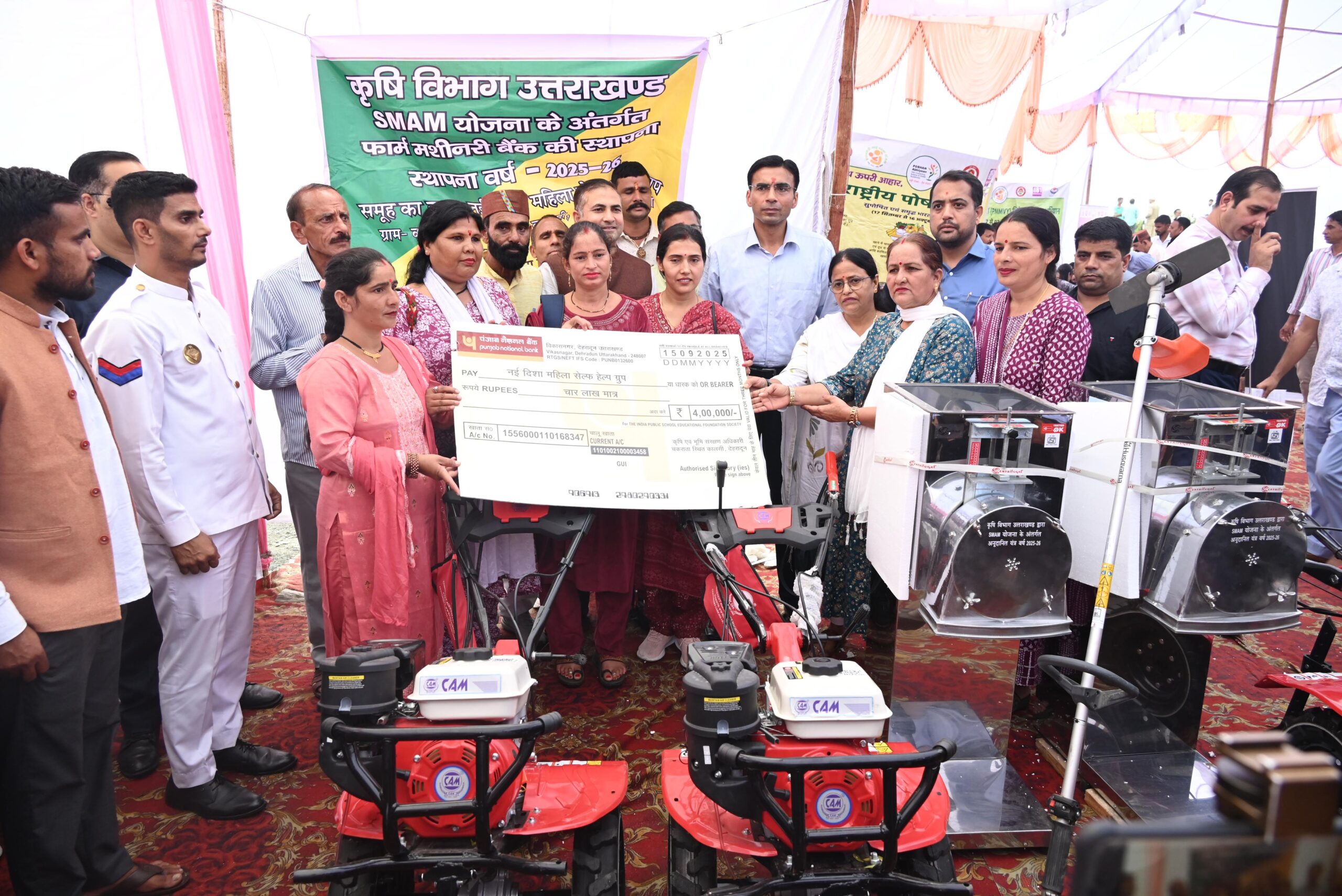 *नई दिशा महिला स्वयं सहायता समूह को 04 लाख की धनराशि चैक और 05 लाख की फार्म मशीनरी सहित लाभार्थियों को 150 से अधिक कृषि उपकरण वितरित*