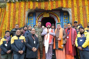 राज्यपाल श्री गुरमीत सिंह ने तीर्थ पुरोहित समाज से भी भेंट की, जिनके द्वारा पारंपरिक मंत्रोच्चारण के साथ उनका स्वागत किया गया। उन्होंने इस अवसर को अत्यंत भावुक और आध्यात्मिक बताते हुए पुरोहित समाज के योगदान को सराहा। बाबा केदारनाथ मंदिर में रुद्राभिषेक के दौरान राज्यपाल ने शांतिपूर्ण विश्व, जनकल्याण, उत्तराखंड की प्रगति और मानवता की भलाई के लिए विशेष प्रार्थना की। पूजा संपन्न होने के बाद उन्होंने मंदिर प्रांगण में एकत्र श्रद्धालुओं का अभिवादन किया और ‘बोलो बाबा केदारनाथ की जय’ के जयकारों से वातावरण को भक्तिमय कर दिया। श्रद्धालुओं को संबोधित करते हुए राज्यपाल ने कहा, “शिवभक्त से बड़ा इस संसार में कोई नहीं है। केदारघाटी के कण-कण में भगवान शिव का वास है। यहां के पर्वतों में भगवान शिव की छवि स्पष्ट रूप से दृष्टिगोचर होती है। इस दिव्य भूमि पर कदम रखते ही मन ध्यानमग्न हो जाता है।”