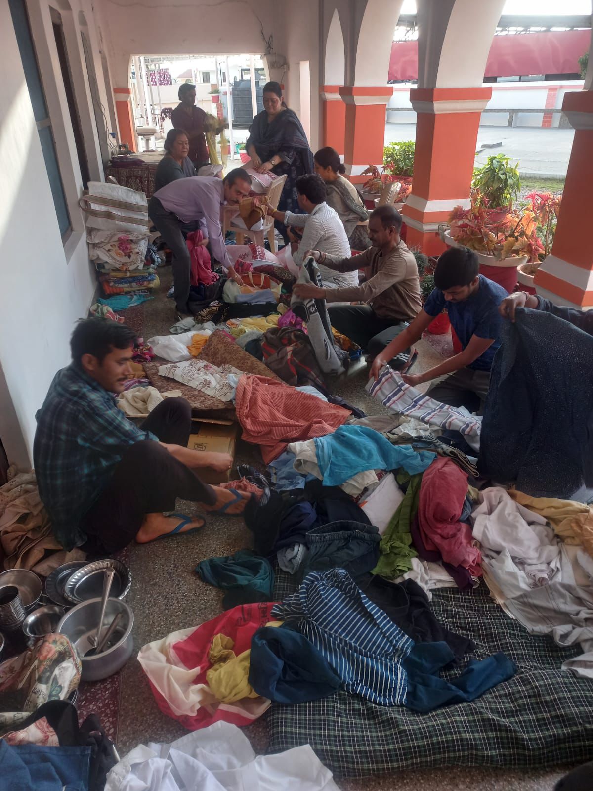 इसके बाद शहर के सभ्रांत लोगो से मदद लेकर कपड़े,बर्तन, बाल्टी, तिरपाल, दरी आदि एकत्र करके घटना स्थल पर पहुंचाई और पीड़ितो में वितरण किया। सेवा भारती ने एक माह का राशन भी एक एक परिवार को सौंप दिया और फिर से झोपड़ियां बनाने में भी मदद का आश्वासन दिया।प्रांत मीडिया संवाद प्रमुख बलदेव पाराशर व