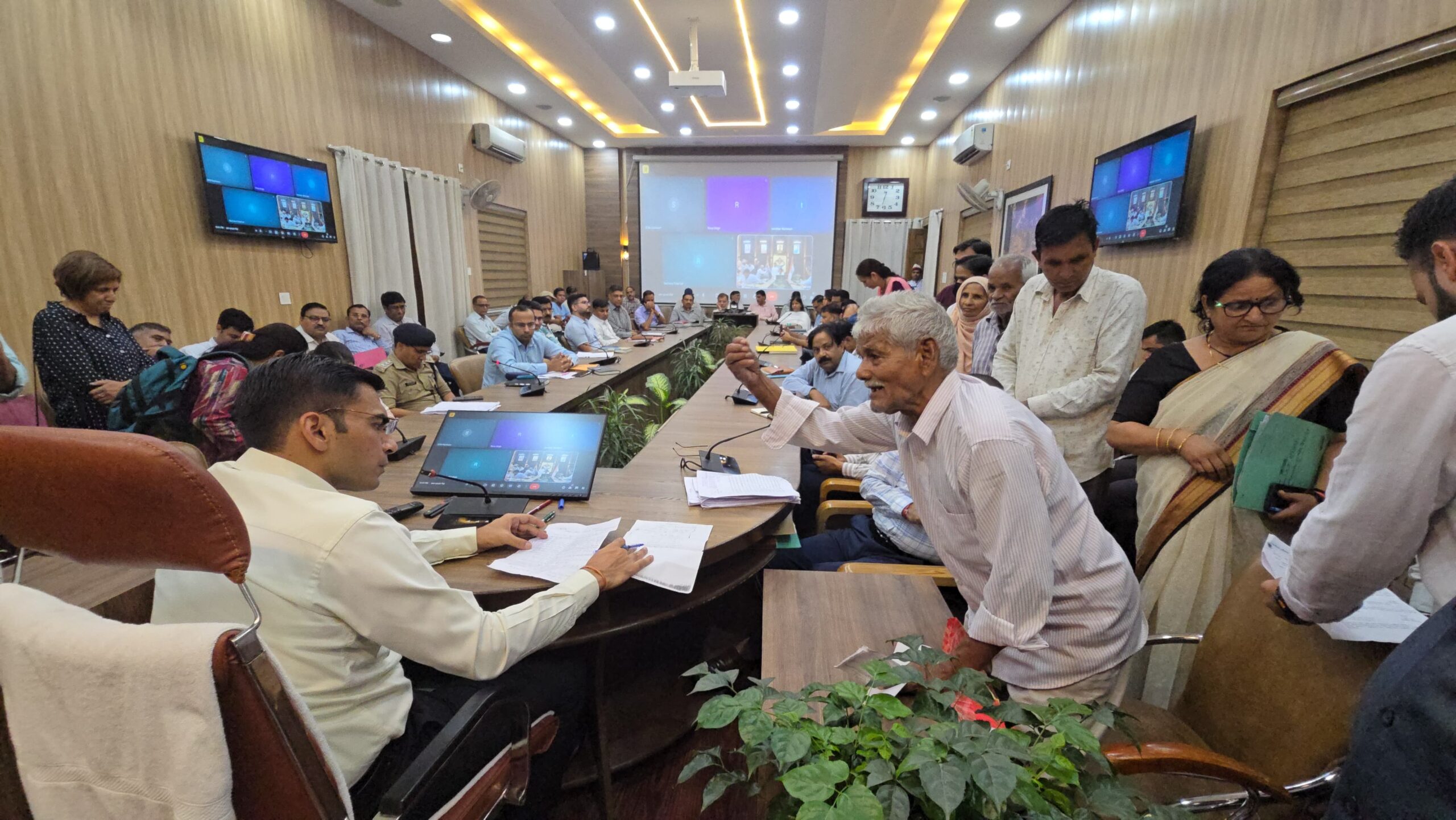 जनता दर्शन में 70 वर्षीय बुजुर्ग महिला जो राजेश्वरी देवी जो 60 प्रतिशत् दिव्यांग है, उनकी पुत्री जो शादीशुदा है उसका अपना मकान है तथा घर कब्जा करके बैठी है अपना हिस्सा मांग रही है। जिस पर जिलाधिकारी ने उप जिलाधिकारी न्याय को बजुर्ग महिला को कब्जा दिलाने के निर्देश दिए। फरियादी नितिन हेमदान ने उनके द्वारा भूमि सम्बन्धी प्रकरण पर कार्यवाही नही हो पायी तथा विधिक सेवा प्राधिकारण न्यायालय में फैसला संतोषजन नही दिया गया है, उनकी स्थिति दयनीय हो गई है, जिस पर जिलाधिकारी ने सचिव विधिक सेवा प्राधिकरण को सम्बन्धित की आर्थिक दयनीय स्थिति हो दृष्टिगत रखते हुए अपील योजित किये जाने तथा कानूनी सलाह को प्रेषित किया गया।