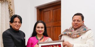 Bollywood actress Smt. Padmini Kolhapure paid a courtesy visit to Chief Minister Pushkar Singh Dhami at the Chief Minister’s residence
